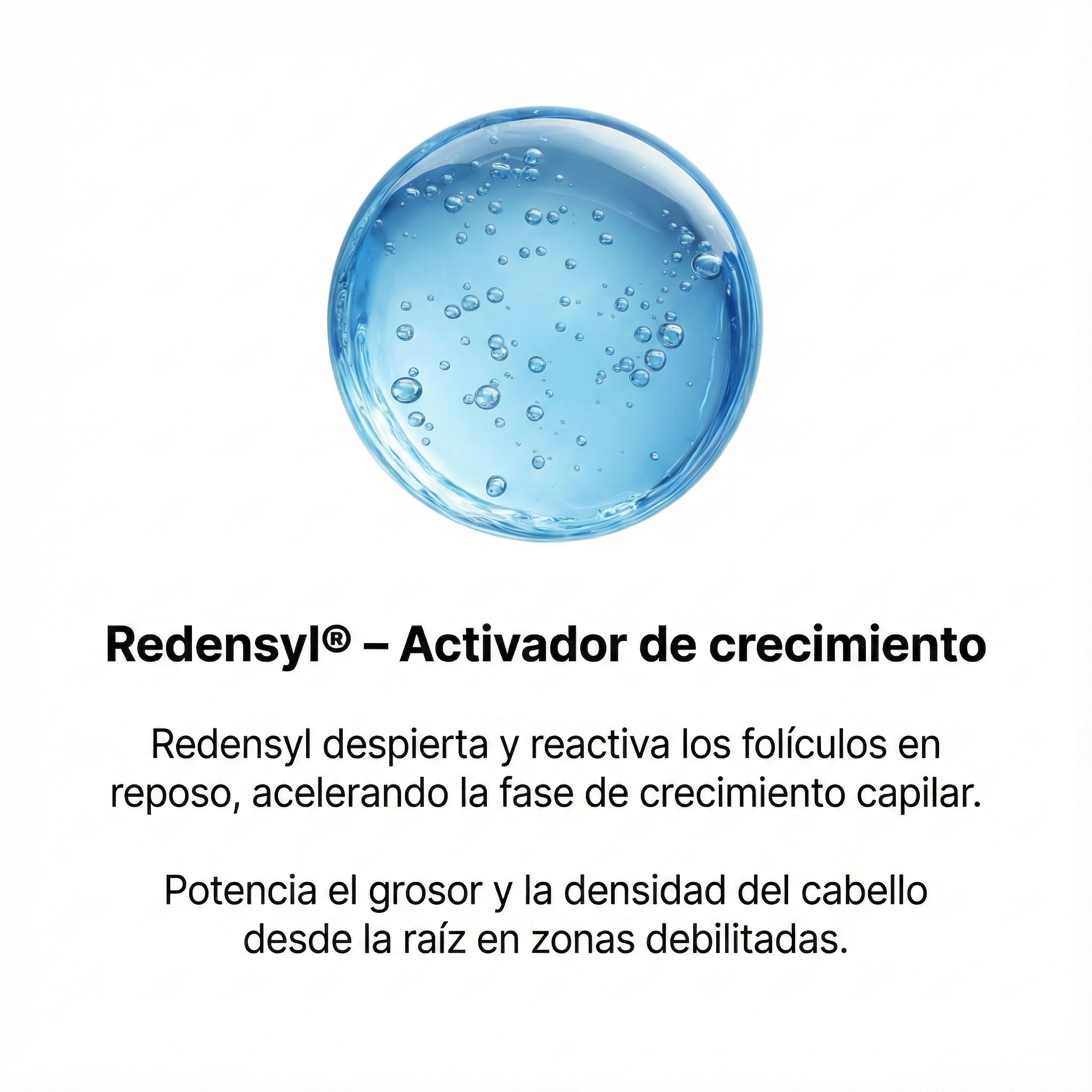 - 🔬 Redensyl® (Reactivación): La "medicina regenerativa" del cabello. Actúa a nivel celular reparando el tejido y equilibrando la grasa del cuero cabelludo.