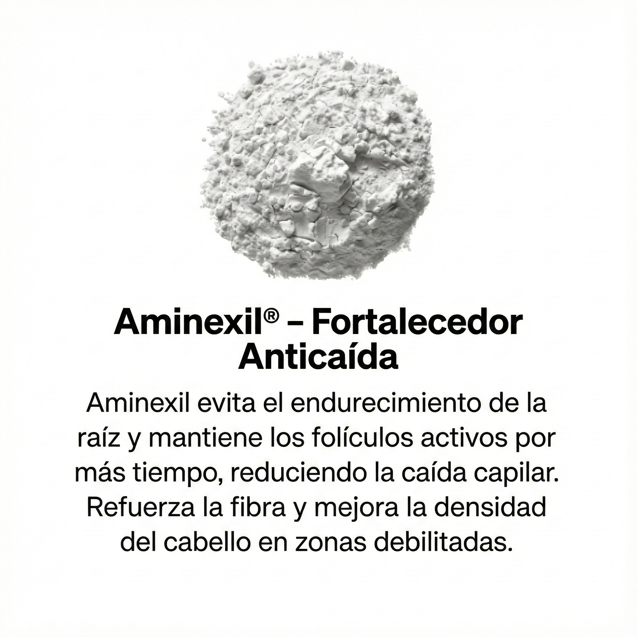 - 🛡️ Aminexil (Anti-Rigidez): Combate el endurecimiento del colágeno alrededor del folículo, una de las causas principales de la asfixia y caída prematura del cabello.