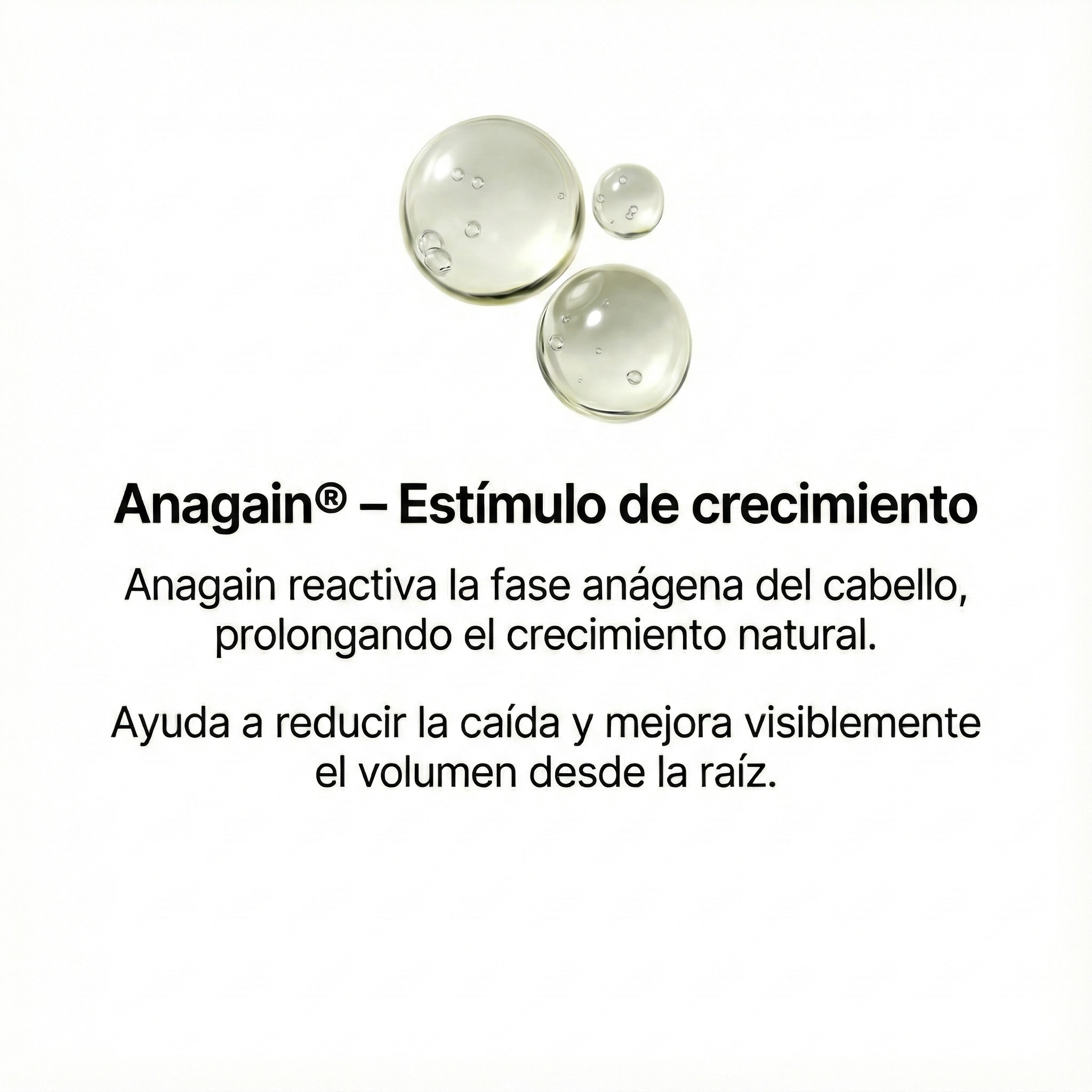 - ⏳ Anagain™ (Ciclo de Vida): Extiende la fase "Anágena" (crecimiento) de tu cabello, logrando que el pelo viva más tiempo antes de caer.
